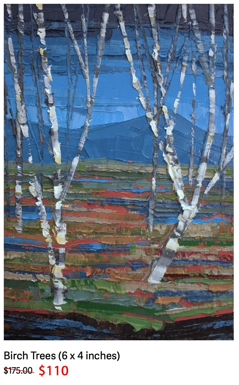 I’m currently in the middle of working on a series of National Parks paintings that I’ll share in March. But in the meantime, my apartment is overflowing with paintings so on next Sunday, January 29th, I’ll be having a studio clearance sale in time for Valentine’s Day. I want to find as many homes as possible for my old work so I have room for my new 2023 paintings. Most of my works will range between 25 - 75% off. I’m also open to any reasonable offers. You can see my available works here.